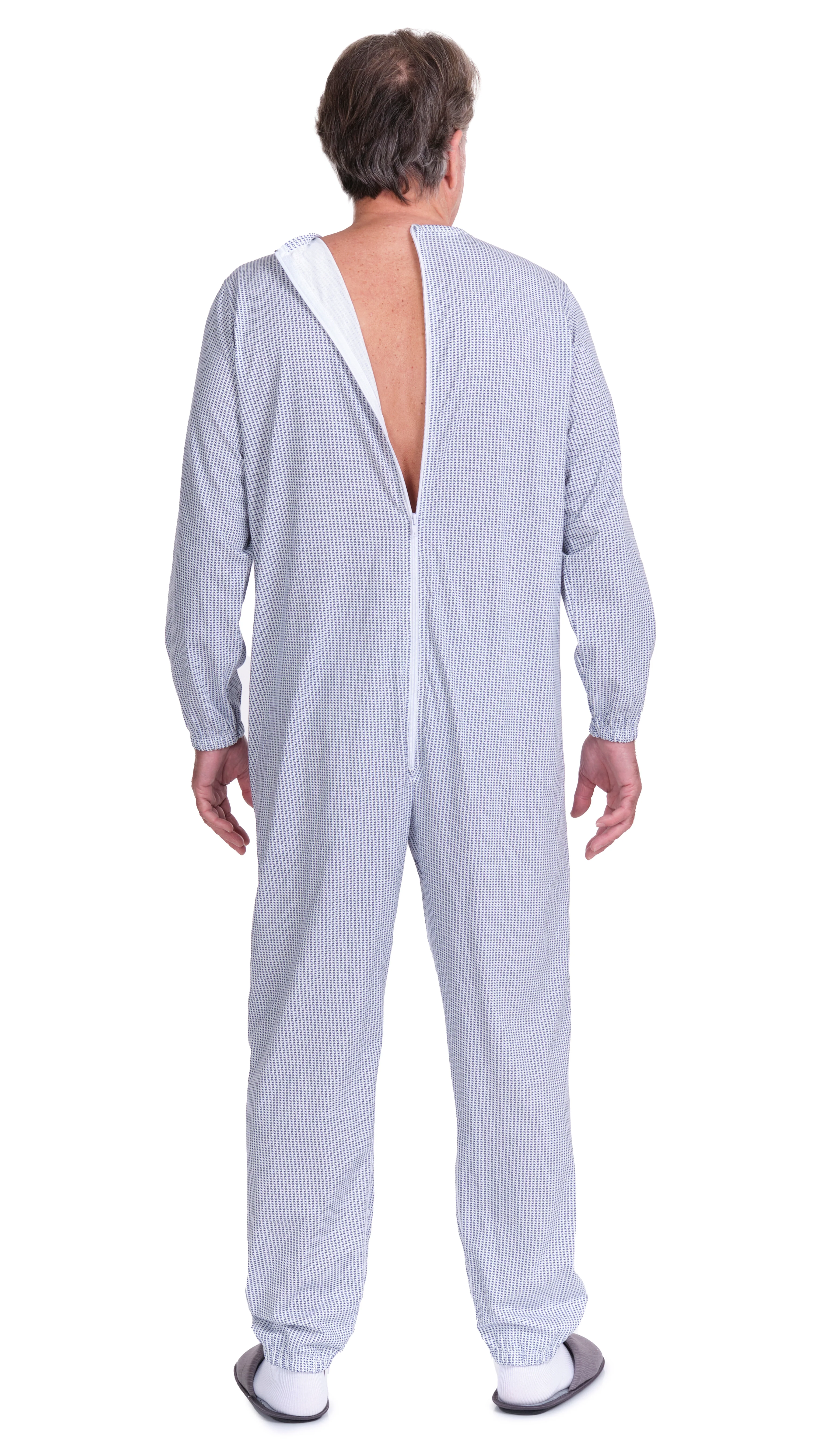 Pigiama Sanitario consigliato a chi ha problemi di incontinenza e/o insofferenza agli indumenti, causa Alzheimer, demenza senile o disabilità psichica.
