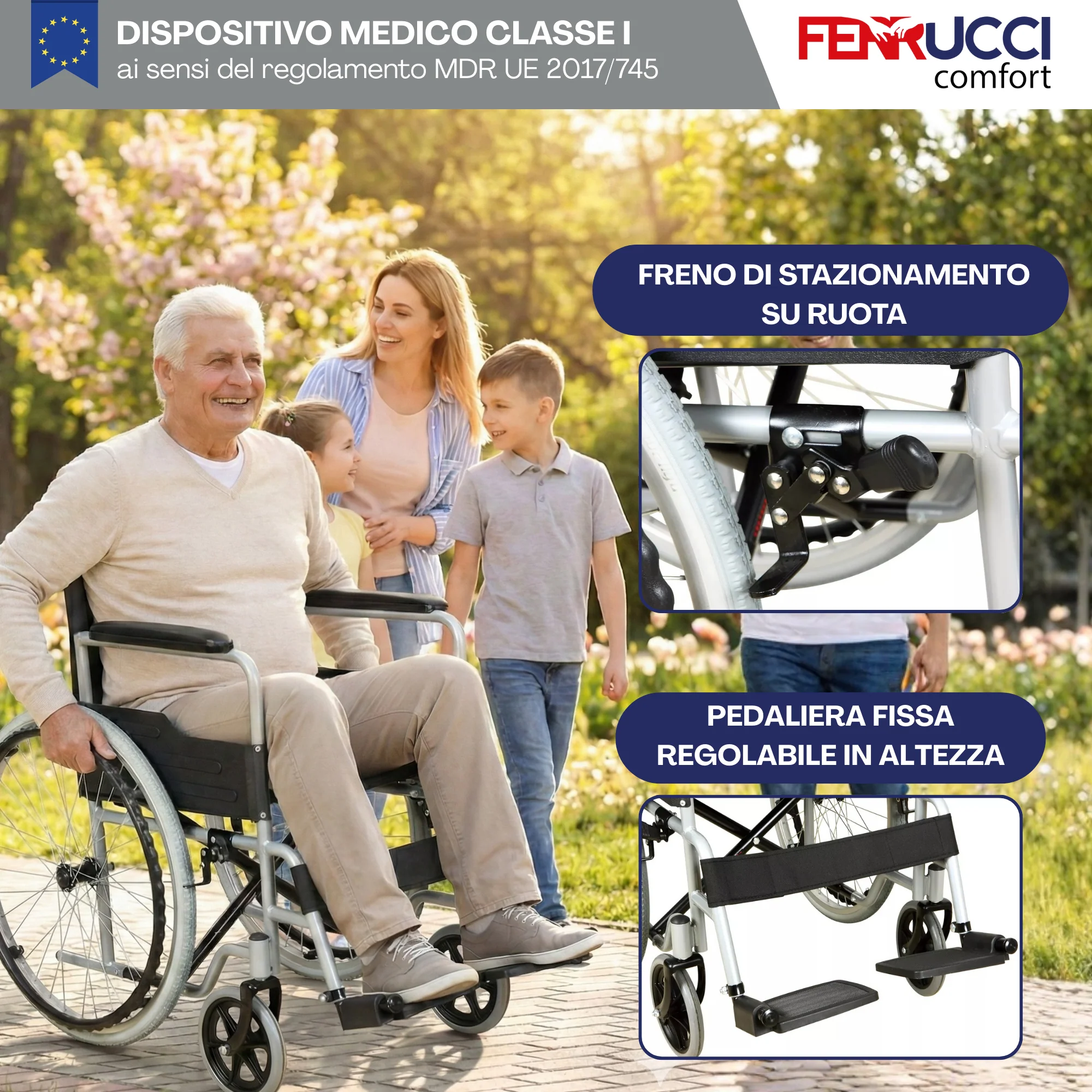 Sedia a Rotelle Pieghevole Ortopedica in Acciaio ad Autospinta - Leggera e Comoda