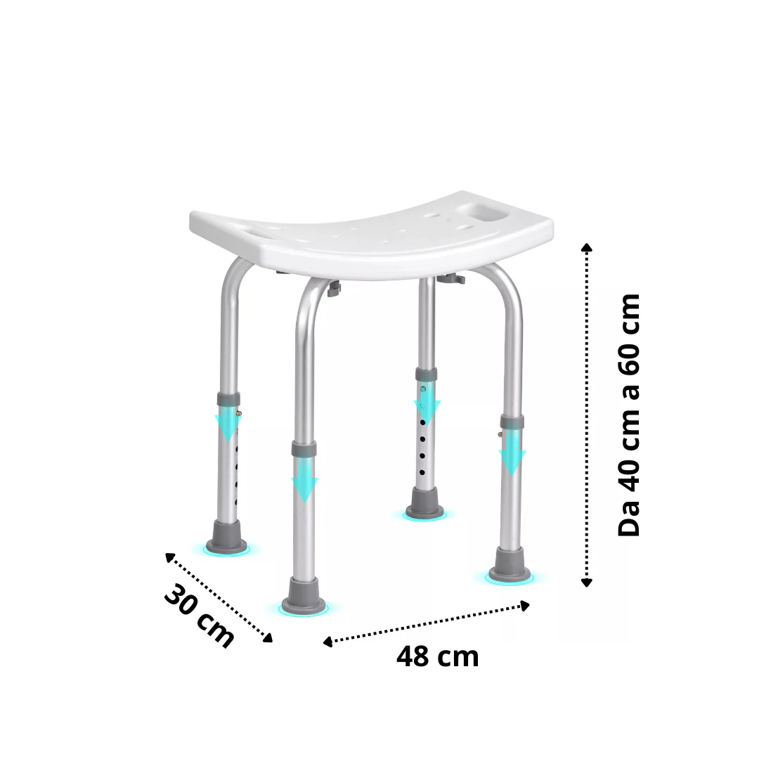 Sgabello Doccia Sedile da Bagno, Altezza regolabile, Alluminio Antiruggine, Piedini Antiscivolo in Gomma, per Anziani e Disabili o Riabilitazione