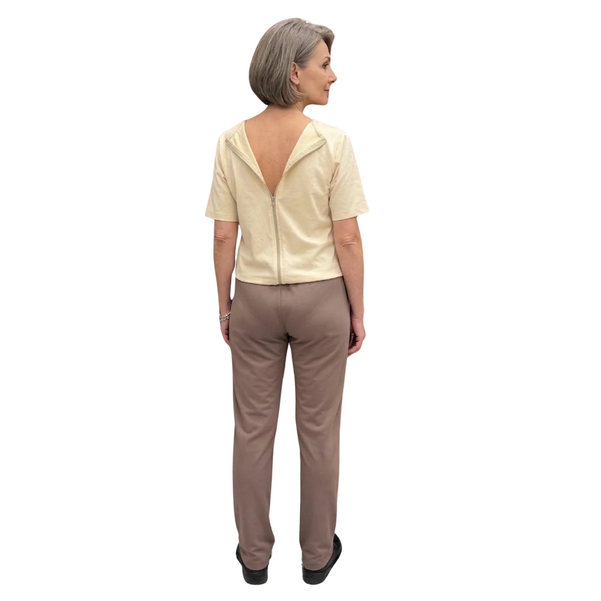 Tuta Girocollo Donna manica corta pantalone lungo da esterno tessuto idrofobico tutone con Cerniera sul Dorso per Anziani con Alzheimer, Demenza o Incontinenza - 9027 MC